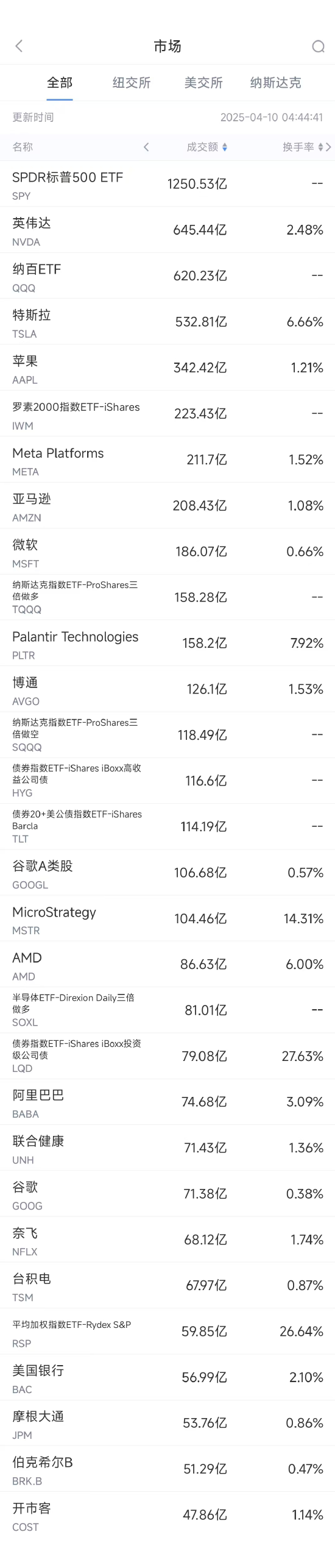 周三美股成交额第1名英伟达收高18.72%,成交645.44亿美元。受到特朗普暂缓对多数国家征收高额关税影响,周三美股科技股普遍收高。